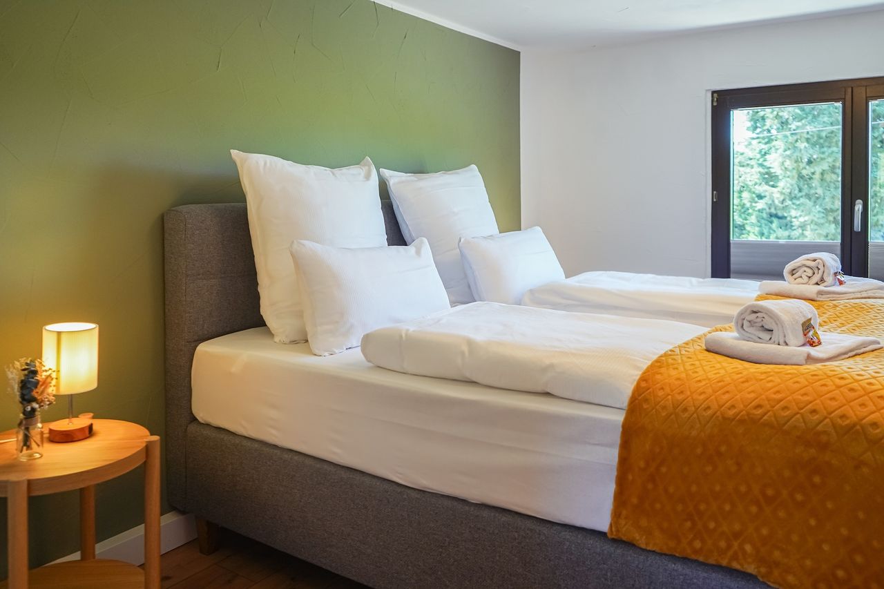 Dieses herrliche Apartment in Nohfelden begrüßt dich mit einem modernen, frischen Design und einem einladenden Balkon. Die ruhige, ländliche Lage ist ideal zum Abschalten und gleichzeitig in der Nähe des Bostalsees, der zahlreiche Freizeitmöglichkeiten bietet. Beginne deinen Tag mit einem NESPRESSO-Kaffee auf dem sonnigen Balkon und genieße die entspannte Atmosphäre. Das Apartment verfügt über zwei komfortable Boxspringbetten, wobei eines in einem charmanten Durchgangszimmer steht, das zusätzli...