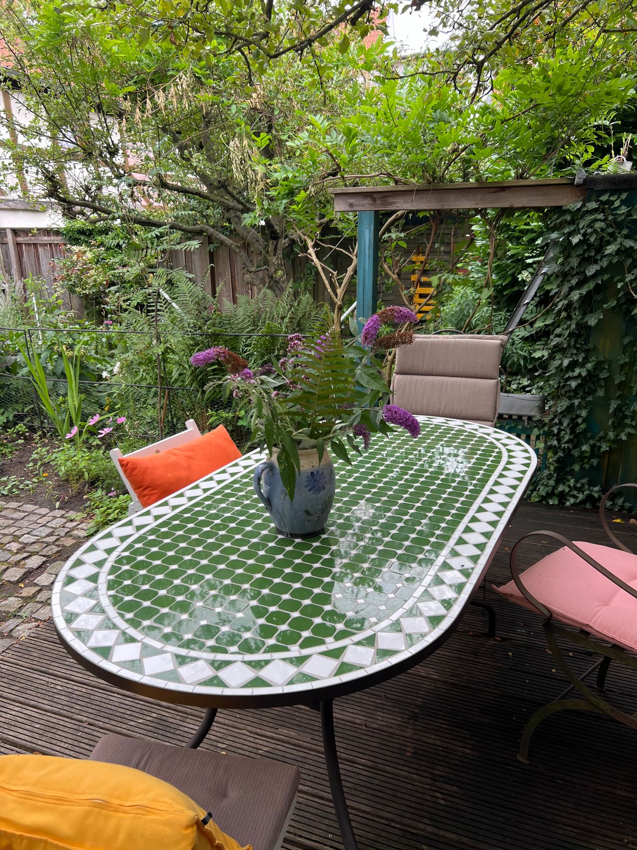 Dieses 400 Jahre alte Haus, das eine denkmalgeschützte Giebelfassade besitzt wurde aufwendig renoviert. Es bietet ca 65 Quadratmeter auf 3 Ebenen und einen sonnigen verwunschenen Garten . Dort können Sie verweilen und grillen, frühstücken oder ein Glas Wein genießen. Ein schöner Ort, um Ferien zu machen, das Stadtleben zu genießen und sich dennoch mitten in der Stadt ungestört zu fühlen. Im Erdgeschoss befindet sich der Flur, die voll ausgestattete Küche mit einem gemütlichen Essplatz , das Ba...