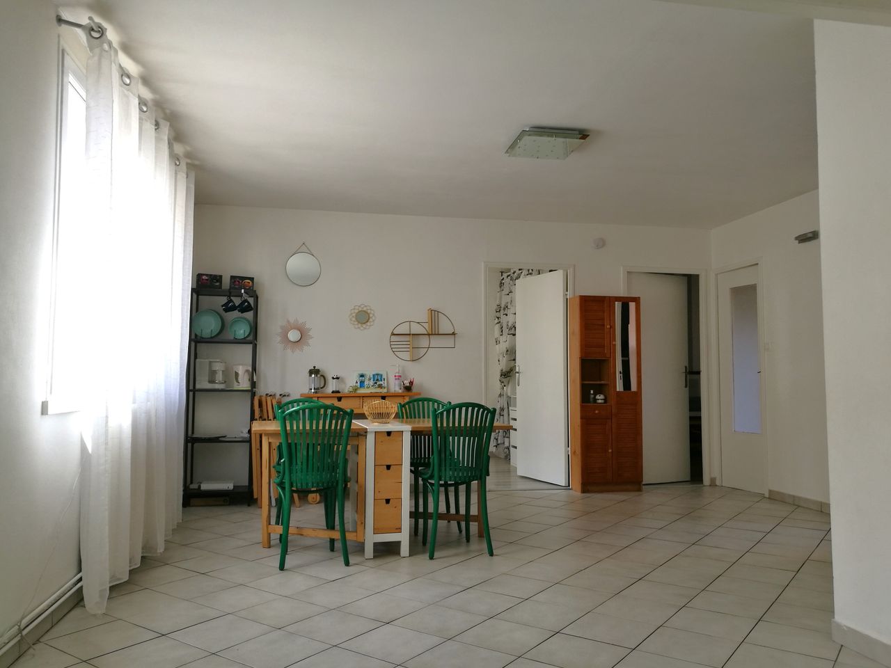 3 roomed crossing apartment (east-west) on the second floor, very bright. Close to all amenities and tramways T6 and T5 and bus. Free parking spaces on the street.