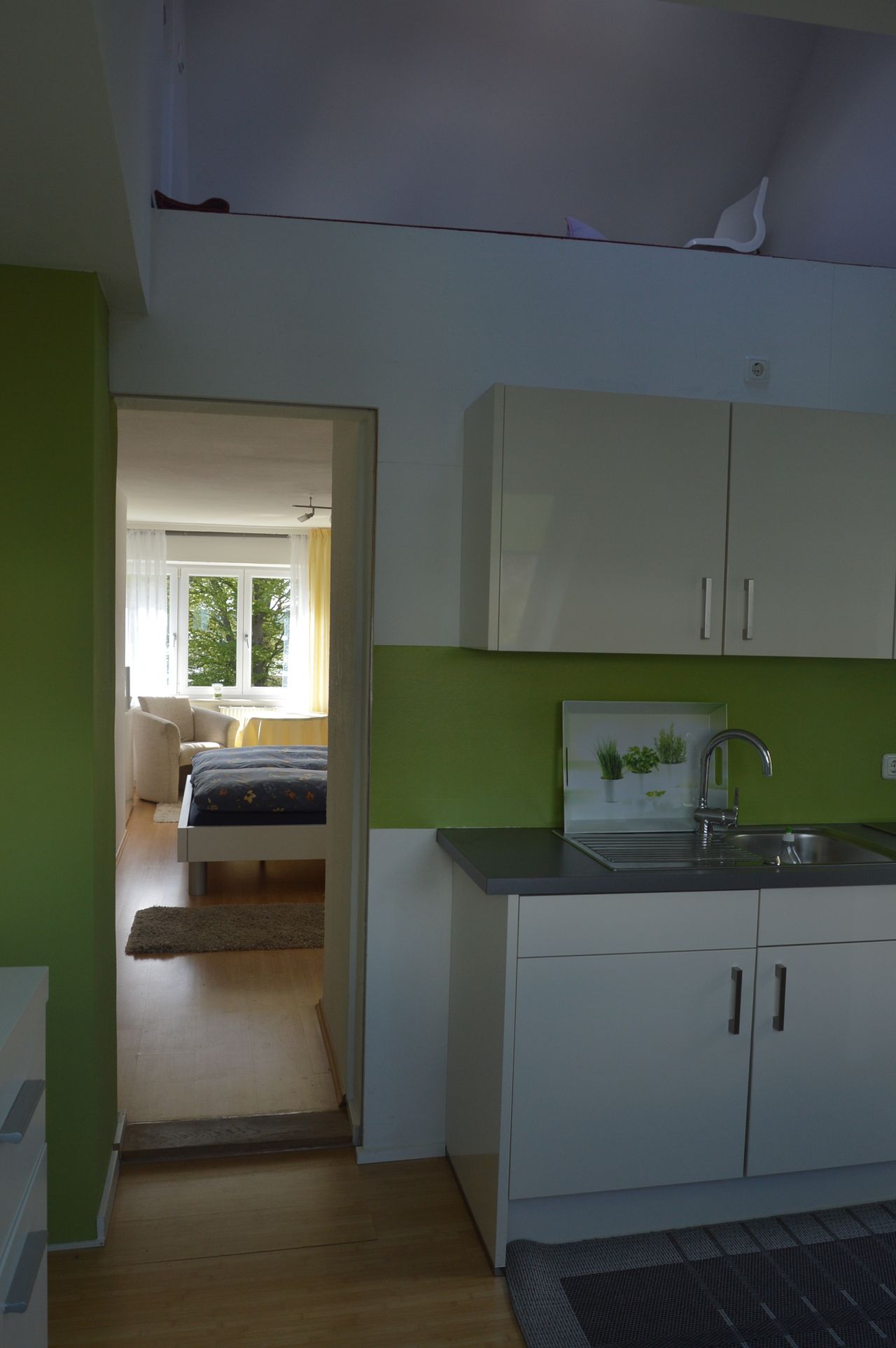 Auch unsere kleinere Ferienwohnung im 1.OG ist gemütlich eingerichtet und bietet Platz für 2 Personen. Die 30m² große Wohnung verfügt über 1 Schlafzimmer mit Seeblick und einem Du/WC sowie einer Wohnküche mit kleinem Nordbalkon. Sie haben Internet-Zugang mittels WLAN.