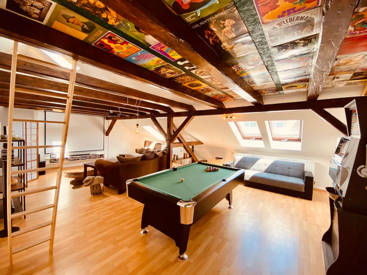 Diese individuelle Wohnung bietet Euch eine menge Interaktionen. Neben einer großen Leinwand mit Beamer findet Ihr auch einen Billiardtisch. Die Wohnung hat neben einer voll ausgestatteten Küche, WLAN, Waschmaschine und alles was Ihr für einen kurzen oder langen Aufenthalt benötigt.