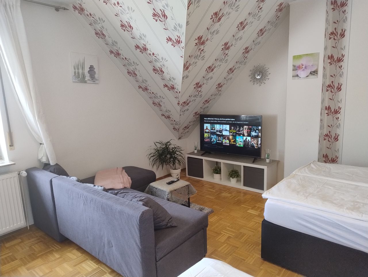 Gerne können wir ein weiteres Springboxbett (90x200cm) hinstellen. Damit können bis vier (04) Personen unterbrach werden. Büro würde in dem Fall wegfallen.
