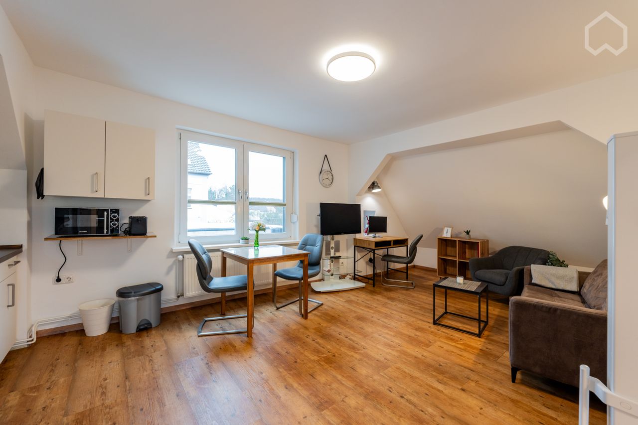 Neu sanierte 50 qm Wohnung mit Gartennutzung. 2 Schlafmöglichkeiten. 1 Schlafzimmer mit zwei Einzelbetten Kleiderschrank 1 Wohnzimmer/ Küche mit Schlafsofa und Fernseher Esstisch für 4 Personen WC mit Dusche neu saniert Stellplatz auf dem Grundstück.