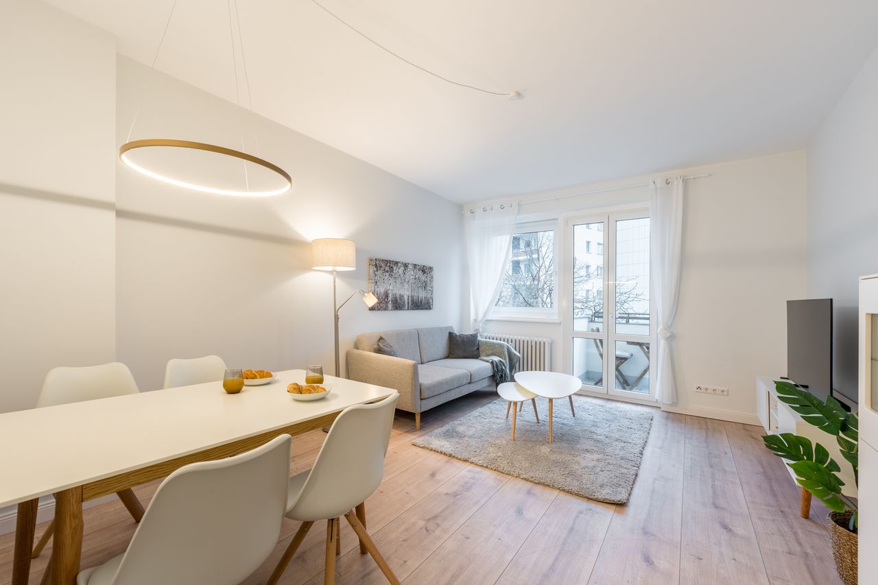 HAUS Das Wohnhaus liegt unweit vom KaDeWe und Kurfürstendamm. Das Haus wurde 1958 erbaut und befindet sich durch regelmäßige Modernisierungsmaßnahmen in einem hervorragenden Zustand. Die Wohnung befindet sich im 3. Stock. Es gibt keinen Aufzug im Gebäude. WOHNUNG In dieser modernen 2-Zimmer-Wohnung finden Sie alles, was Sie im Alltag benötigen. Sie haben ein bequemes Doppelett und einen großen Kleiderschrank im Schlafzimmer, eine begehbare Dusche im Badezimmer und ein schönes Wohnzimmer mit Ess...
