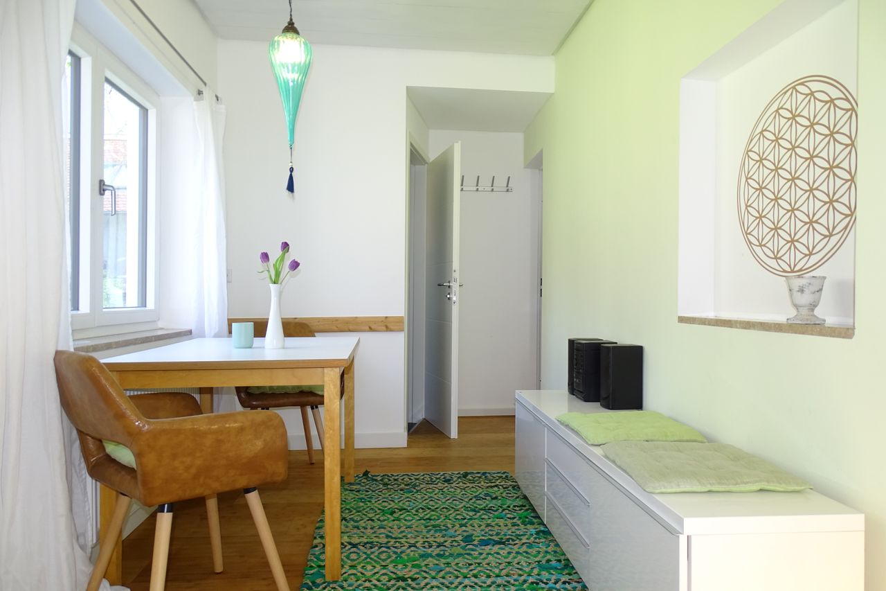 unsere Wohnung mit eigenem Eingang, Terrasse und Gartennutzung bietet Platz für 2-3 Personen. Sie verfügt über 1 Schlafzimmer, DU/WC, einen kleinen Wohnraum mit einer Schlafcouch und einer kleinen Wohnküche. Sie haben Internet-Zugang mittels WLAN.