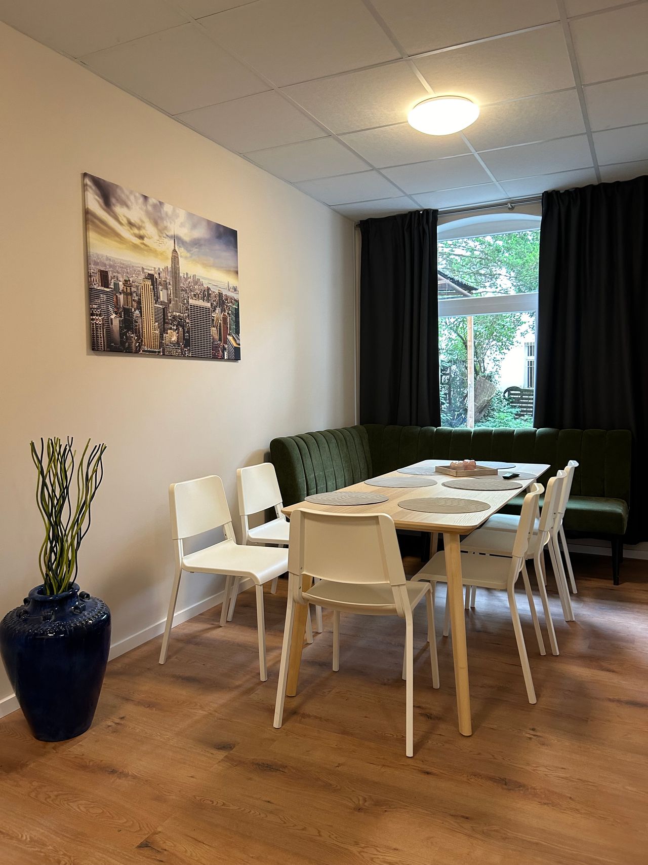 Diese Wohnung ist für kleine Gruppen geeignet. Es schlafen nur zwei Personen in einem Zimmer in ihrem eigenen Bett. Eine große Küche mit Gemeinschafts Essbereich, lädt zum Verweilen ein.