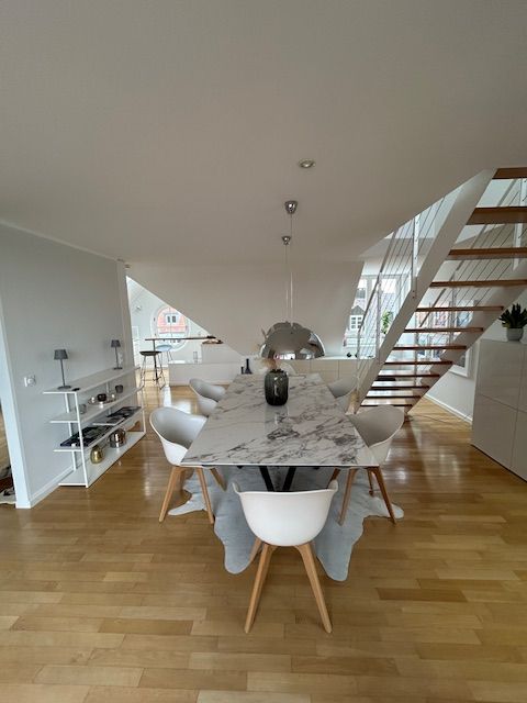 Diese wunderschöne und einzigartige Dachgeschosswohnung ist mit hochwertigsten Möbeln ausgestattet und besticht durch einzigartige Lage und Panoramablick über München.