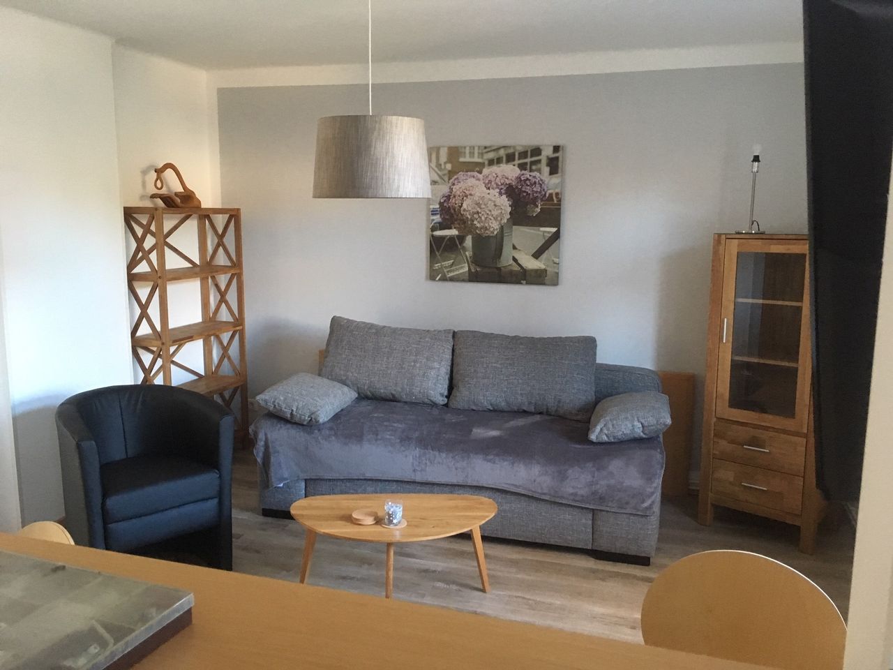 Neu sanierte 44qm Wohnung mit Gartennutzung. 3 Schlafmöglichkeiten. 1 Schlafzimmer mit zwei Einzelbetten Kleiderschrank 1 Wohnzimmer/ Küche mit Schlafsofa und Fernseher Esstisch für 4 Personen WC mit ebenerdiger Dusche neu saniert Stellplatz auf dem Grundstück.
