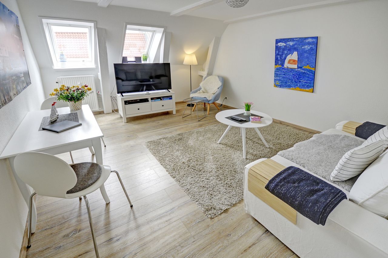 Die Rote Straße ist eine pittoreske kleine Einkaufsstraße im Herzen Flensburgs mit urigen kleinen inhabergeführten Geschäften, Cafés und Restaurants. Im Sonnenhof - einem von mehreren kleinen Kaufmannshöfen - befindet sich die kleine Ferienwohnung für zwei Personen. Zu Beginn des Jahres 2017 komplett renoviert besticht die Zwei-Zimmer-Wohnung neben ihrer zentralen Lage mit einer vollausgestatteten Küche und einem modernen Duschbad. Liebevoll und mit allem Komfort eingerichtet lädt sie dazu ein, ...