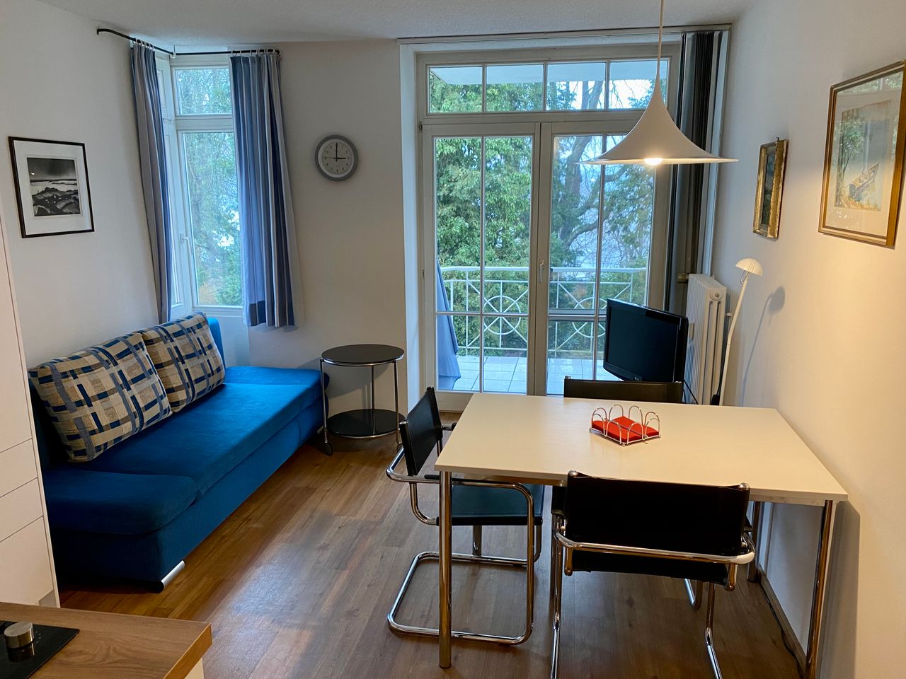 Wohnung für 1 bis 2 Personen (+1 bis 2 Kinder, Schlafcouch), 1 Schlafzimmer, 1 Wohnzimmer mit Schlafcouch (ausklappbar), 1 neue Küche mit Spülmaschine, 2 Duschbäder/WC, Eingangsflur, Südbalkon mit Seeblick