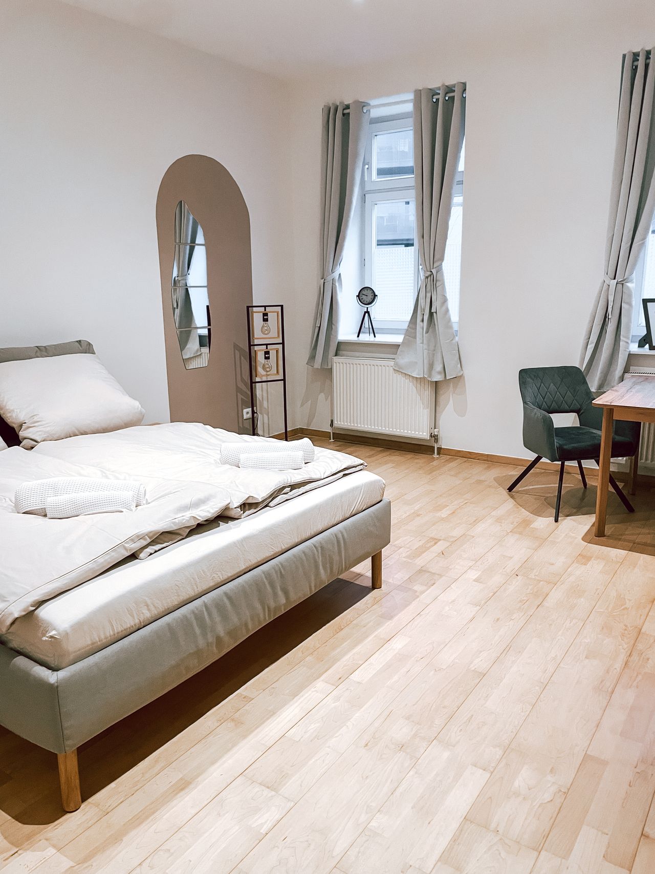 Dieses wunderschöne Apartment befindet sich nähe Schönbrunn und verfügt über ein Schlaf- Wohnzimmer, inkl. Tisch, TV und einer Kommode. Außerdem befindet sich in dem Apartment eine voll ausgestattete Küche inkl. Kaffeemaschine und Wasserkocher. Zusätzlich verfügt dieses Apartment über eine Dusche und ein separates WC.