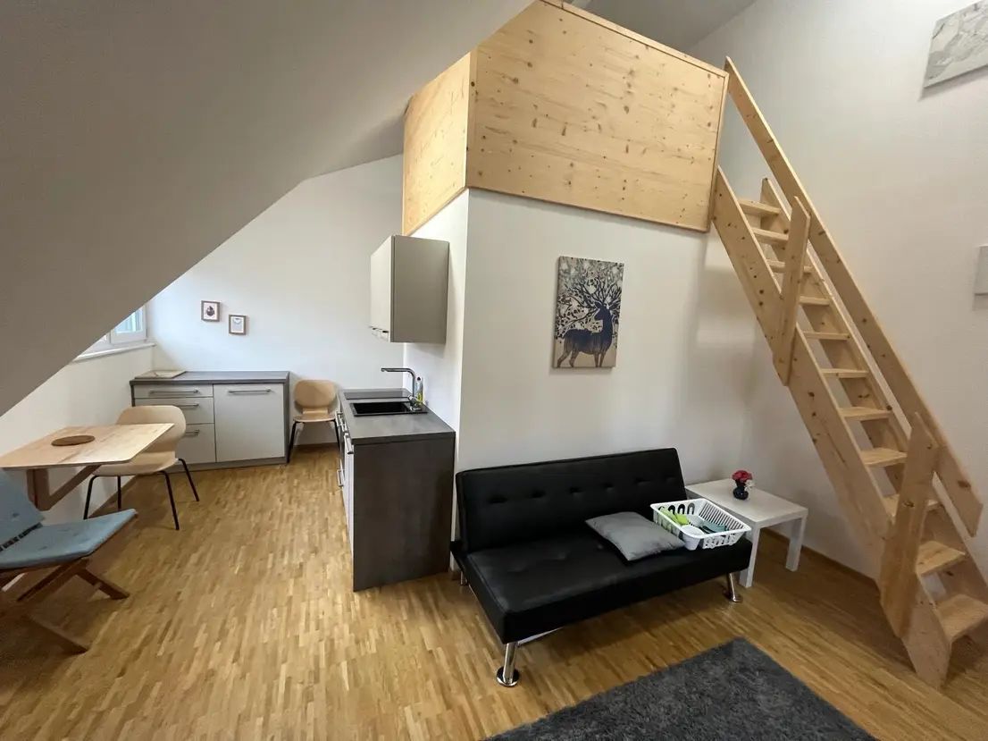 Das stilvolle DG Apartement mit Galerie liegt in einem besonders schönem , neu gebauten hell durchflutetem Atriumkomplex mit wunderschönem Innenhof. Es ist komplett möbliert mit einem modernem Boxspringbett, komplett ausgestatteter Küchenzeile, Tisch, Stühle, begehbarer Dusche. Zusätzlich verfügt es über einen Abstellraum im Keller.