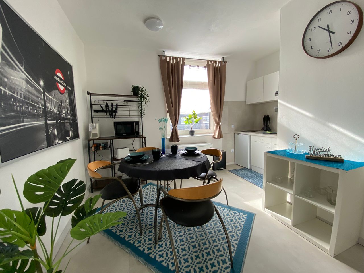 Euch erwartet ein liebevoll gestaltetes 2 Zimmer Apartment, Der Wohnschlafraum verfügt über ein 140x200m Doppelbett, Relax Sessel, Schreibtisch und Smart TV , Schrank und Kommode für ausreichend Stauraum Das Esszimmer ist komplett ausgestattet mit Einbauküche Herd, Microwelle mit Grillfunktion, Kaffeemaschine etc Garderobe, Schuhschrank und reichlich Stauraum Das Bad ist eine frisch renovierte Wohlfühloase mit Dusche, Waschtisch, Handtuchwärmer, LED Beleuchtung