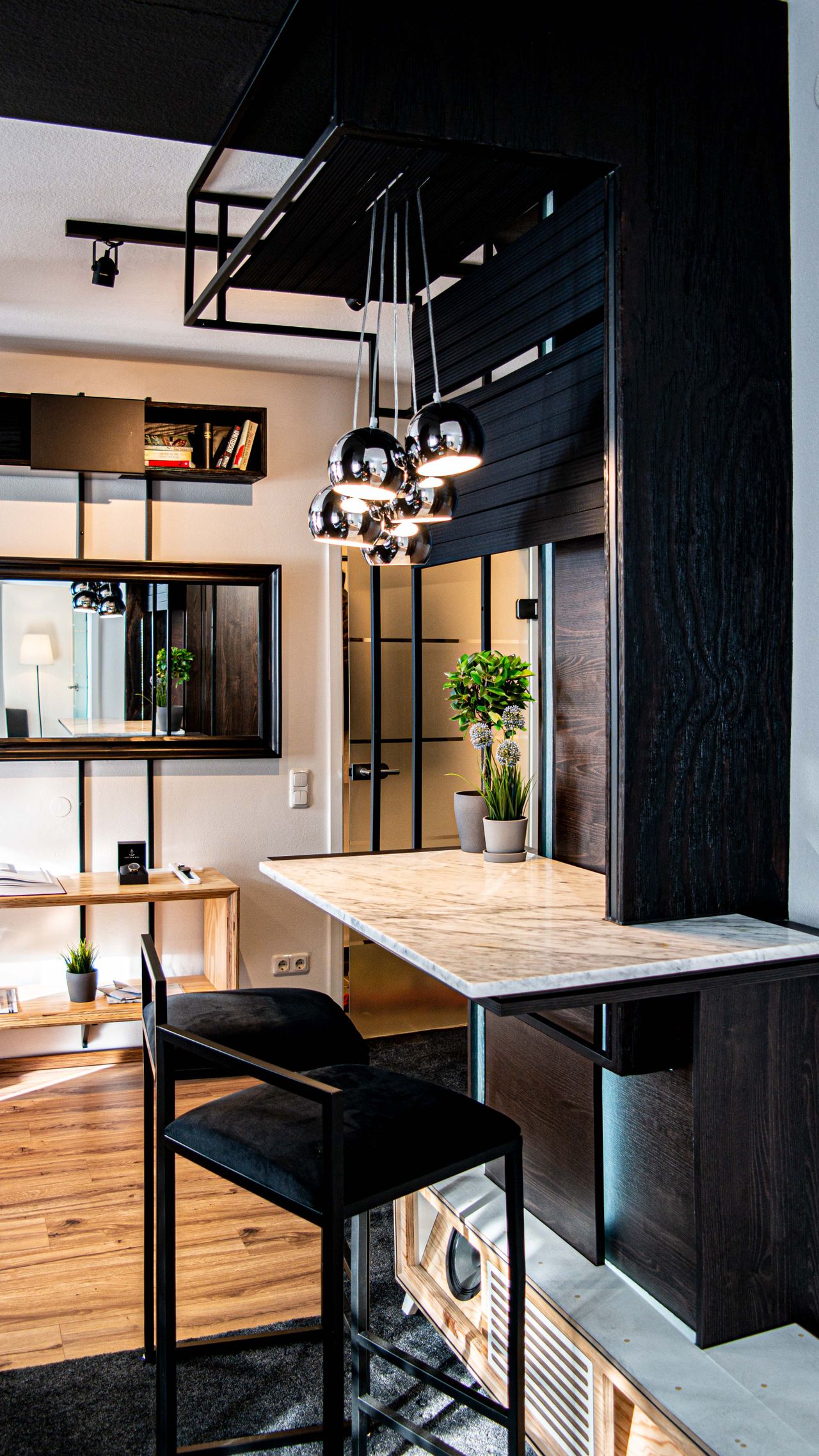 Die Wohnung ist sehr intelligent und luxuriös eingerichtet. Es gibt einen großen Arbeitsbereich mit erweiterbaren Monitoren und eine Küche mit sehr guter Ausstattung. Caldern liegt nordwestlich von Marburg und ist mit dem Auto in weniger als 10 Minuten zu erreichen. Die Zug- und Busverbindung verbindet im Stundentakt alle umliegenden Orte mit der Stadt Marburg. Supermärkte (Aldi, Rewe) befinden sich im Nachbarort Sterzhausen. Für den kleinen Einkauf gibt es im Ort einen Metzger, Bäcker und eine...