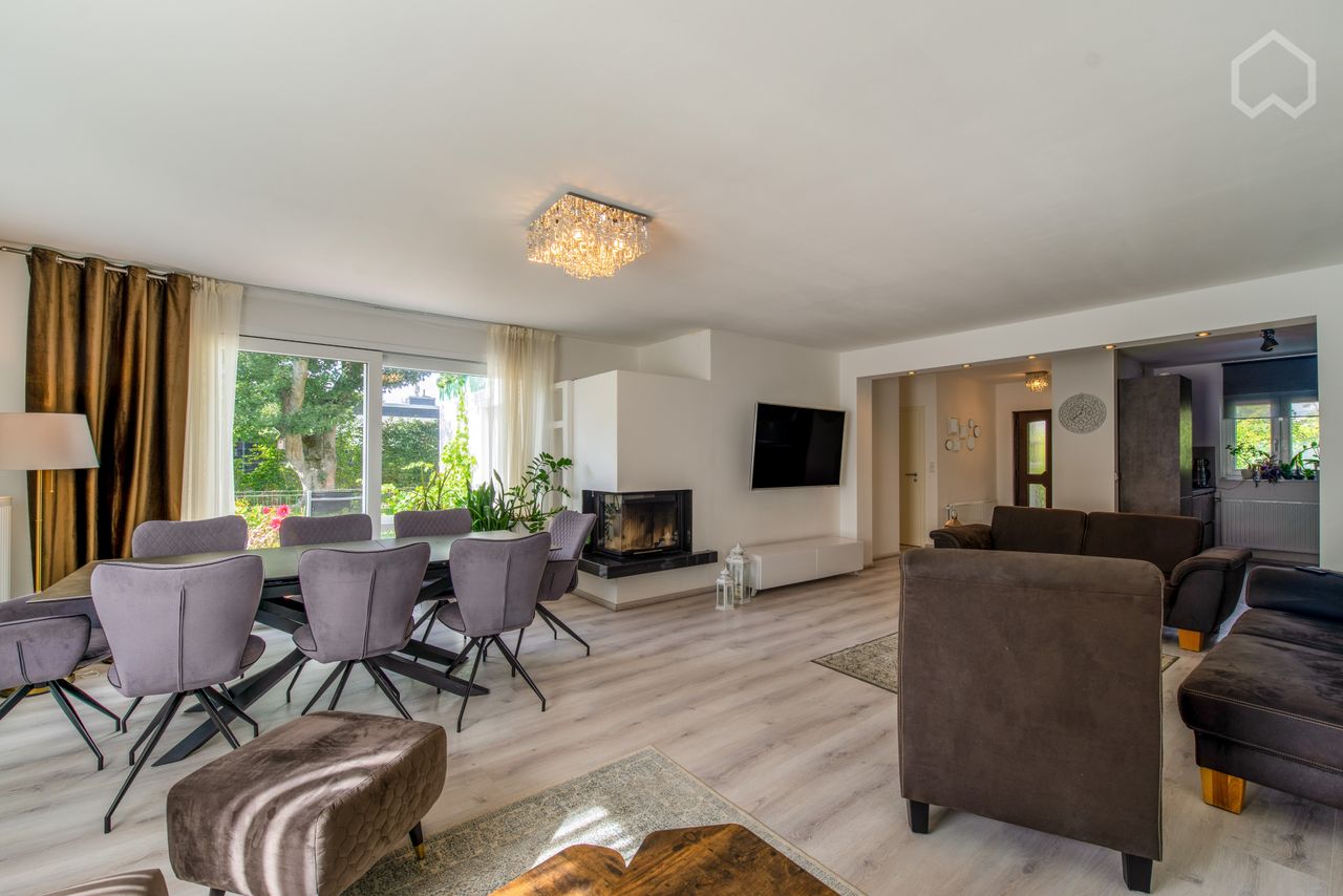 Das Haus ist 10 min Fußweg vom Bahnhof Frechen Königsdorf entfernt. Alle 10 min gibt es Zugverbindungen S12,S19,S13 nach Köln Hbf und Köln Messe Deutz. Vom Haus nach Köln HBF braucht man nur 26 min. 1 Gästebad und ein Masterzimmer. Kamin vorhanden. Das Haus ist voll ausgestattet.