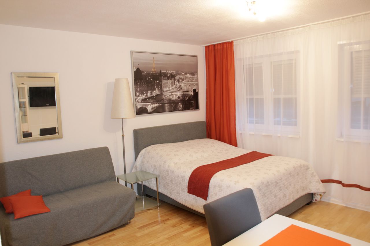 *deutsche Version steht unten* Apartment Paris The apartment is very central, only about 200 meters from the main street or from the pedestrian zone, but very quiet in the Tempo 20 zone. Cafés, bakeries, shops are in the immediate vicinity. The bus station is in approx. 200 meters / (approx. 2 minutes) from the apartment. You can reach the train station (Wiesloch-Walldorf) within approx. 6 minutes. Approximately 1.3 km to SAP (about 10 minutes on foot). The house, built in 1991, is located in ...