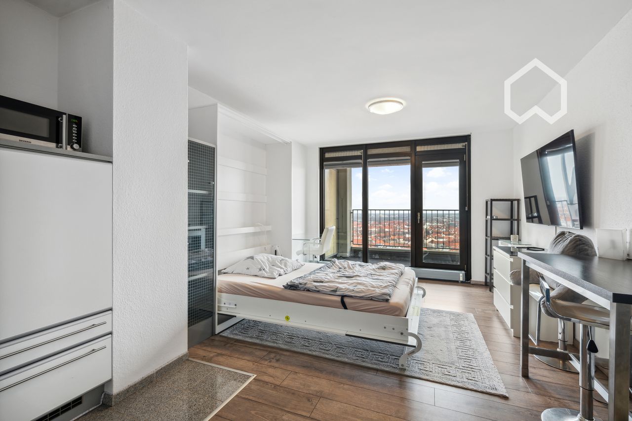 Einzigartig und exklusiv für City-Liebhaber! Mitten im Stadtzentrum von Hannover erstreckt sich das prominente Bredero-Hochhaus am Ende der Lister Meile gegenüber des hannoverschen Hauptbahnhofs. Aus dem 20. Stockwerk hat man über die Loggia mit Nord- Ost-Ausrichtung einen atemberaubenden Ausblick über die Landeshauptstadt. Das möblierte Apartment ist in einem renovierten Zustand und bietet ca. 35 qm Wohnraum. Durch das hochwertige Schrankbett ist die gesamte Größe des Apartments tagsüber nutzba...