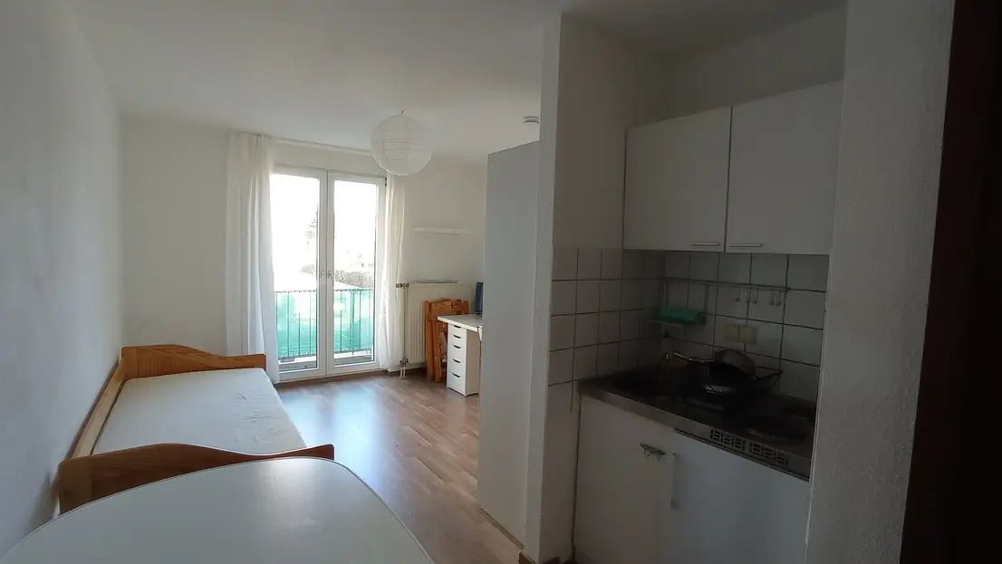Ausstattung Die Wohnung ist komplett möbliert, Internet und Telefon vorhanden mit neuestem Wlan-Router, Bett (mit Bettzeug, Kissen und Bettdecke), Kleiderschrank, Pantryküche mit dem notwendigsten Geschirr und Besteck, Toaster, Mikrowelle, Wasserkocher, Fernsehapparat vorhanden (Kabelfernsehen), Telefon, Schreibtisch, Stühle usw. alles vorhanden. Die Wohnung wird zu einer Pauschalmiete von 650 Euro vermietet, sodass keine weiteren Kosten auf den Mieter zukommt, Waschmaschinenbenutzung im Haus, F...