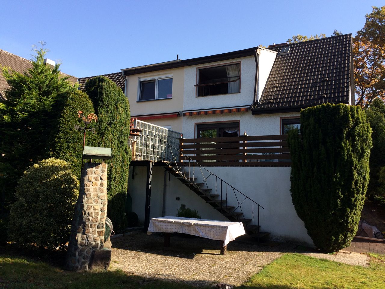 *Deutsche Beschreibung unten Small house, newly renovated, fully furbished, including television set and WLAN/WiFi, 90m². One living-room with spacious terrace and beautiful vista of forest, two bedrooms with space for up to three adults and one child, kitchen with all appliances, washing machine in basement. Modern bathroom plus one seperate toilette. Central heating (oil). Large garden (780m²) with facilities for barbecuing. Gardening by tenants is welcomed but not mandatory. Own parking lot ...