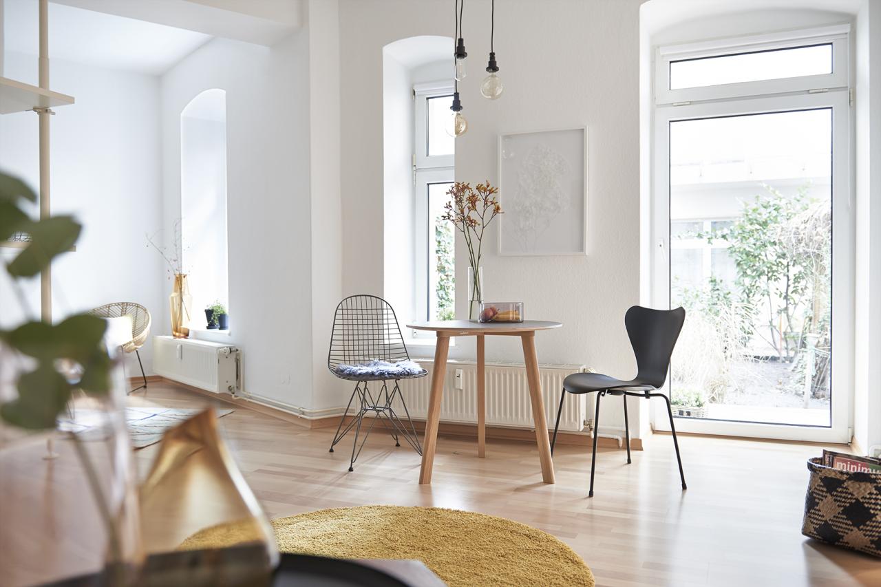 This newly renovated apartment is situated in the summerhouse of an old building from the turn of the century. After walking through the well planted courtyard you arrive at this spacious one room flat. From the extensive bed and living room, the separate kitchen as well as the new wooden patio can be reached. The bathroom has a window and can be accessed through the hallway. The apartment is furnished with well selected designer pieces by Eames, Fritz Hansen, Hay and New Tendency. In the livi...