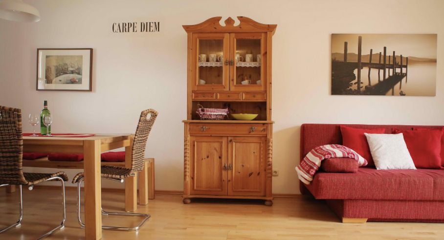 Unsere Ferienwohnung für Nichtraucher liegt im Erdgeschoss mit seperatem Eingang. Sie können auf der eigenen Terrasse den schönen Bergblick, oder auf der hauseigenen Seeterrasse den Seeblick genießen. Zudem stehen bei feuchten Wetterverhältnissen ein Schwimmbad, ein Flachbildfernseher nebst spannender DVD-Sammlung, sowie unterschiedliche Spiele für Abwechslung bereit. Für eigene mobile Geräte kann In der Wohnung kostenloses W-LAN genutzt werden. Die Wohnung wurde vor 3 Jahren im Innenbereich k...