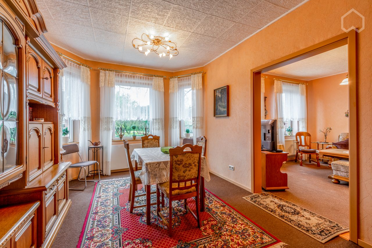 Ruhige, dörfliche Lage mit eigener Terasse im EG. Voll ausgestattete Wohnung mit 4 Zimmern und 130m² ein Dorf vor Ludwigslust von Privat. Wohnung mit Zentralheizung und Warmwasser. Küche voll ausgestattet mit Herd, Mikrowelle, Waschmaschine, Geschirrspüler, KG-Kombination. 2mal TV, Radio und W-Lan inklusive. 2 Schlafzimmer für 4 Personen. Bad mit Dusche und Badewanne. Bettwäsche und Handtücher werden zur Verfügung gestellt. Tiere nach Absprache möglich. Autobahnkreuz ca. 15 min entfernt.