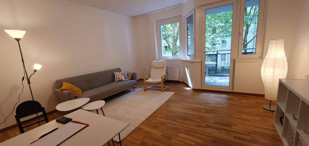 3-Zimmer Küche Bad Balkon mit freundlicher Einrichtung Im 1. OG in einem ruhigem Haus an Nebenstrasse, Wird leider nicht an Wohngemeinschaften vermietet. U-Bahn Station Bayrischer Platz: 8 Min zu Fuß, Supermarkt EDEKA: 5 Min. zu Fuß Neues Fliesenbad mit großem Fenster, Badewanne, Dusche, Waschmaschine, Handtuchwärmer, Fußbodenheizung Isolierglasfenster Böden Parkett, Fliese, Laminat