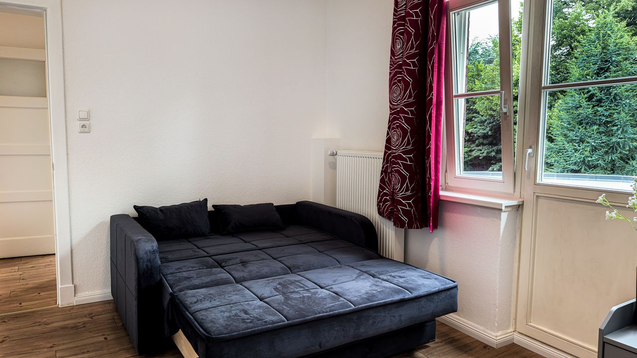Die Wohnung befindet sich in einem frisch sanierten Altbau und verfügt über hohe Decken. Pakett Fußboden und einbau Küche, die Terasse sowie der Garten sind direkt über die Wohnung zugänglich. Wlan, sowie Fernseher ist inklusiv.