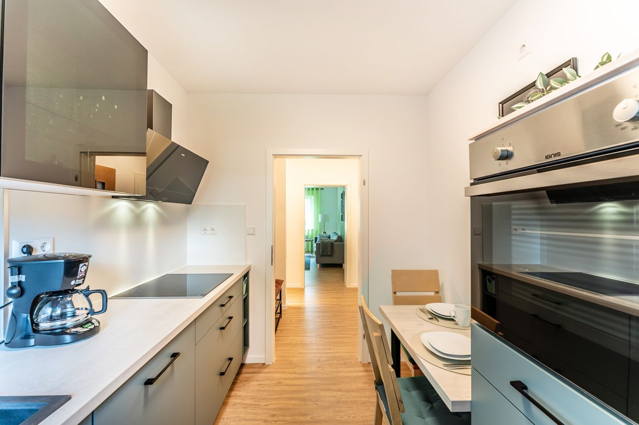 Die gemütliche Ferienwohnung bietet Platz für die ganze Familie und verfügt über zwei separate Schlafzimmer, ein einladendes Wohnzimmer sowie eine komplett ausgestattete Küche mit Kühlschrank, Kaffeemaschine, Spülmaschine und allen notwendigen Küchenutensilien. Das moderne Badezimmer ist mit einer Dusche und einem Haartrockner ausgestattet. Handtücher und Bettwäsche werden gestellt, sodass Sie entspannt anreisen können. Auch Familien mit Kindern sind herzlich willkommen – ein Zustellbett und ei...
