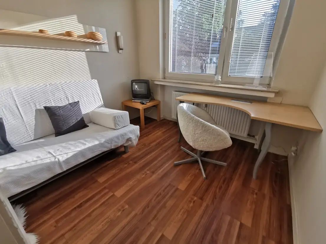 For rent is a 1-room apartment with the following equipment: - Shower bath - Kitchen Fridge / Stove / Oven / Table / Chairs / Microwave / Coffee maker - built-in wardrobe - sofa bed - hallway - Living/bedroom - laminate - the apartment is fully furnished and equipped launderette is 2 underground stations away The underground station "Niedersachsenring" is 8 minutes walk away. The journey to the main station takes 9 minutes. The 121 bus runs three minutes on foot (every 10 minutes). The house...