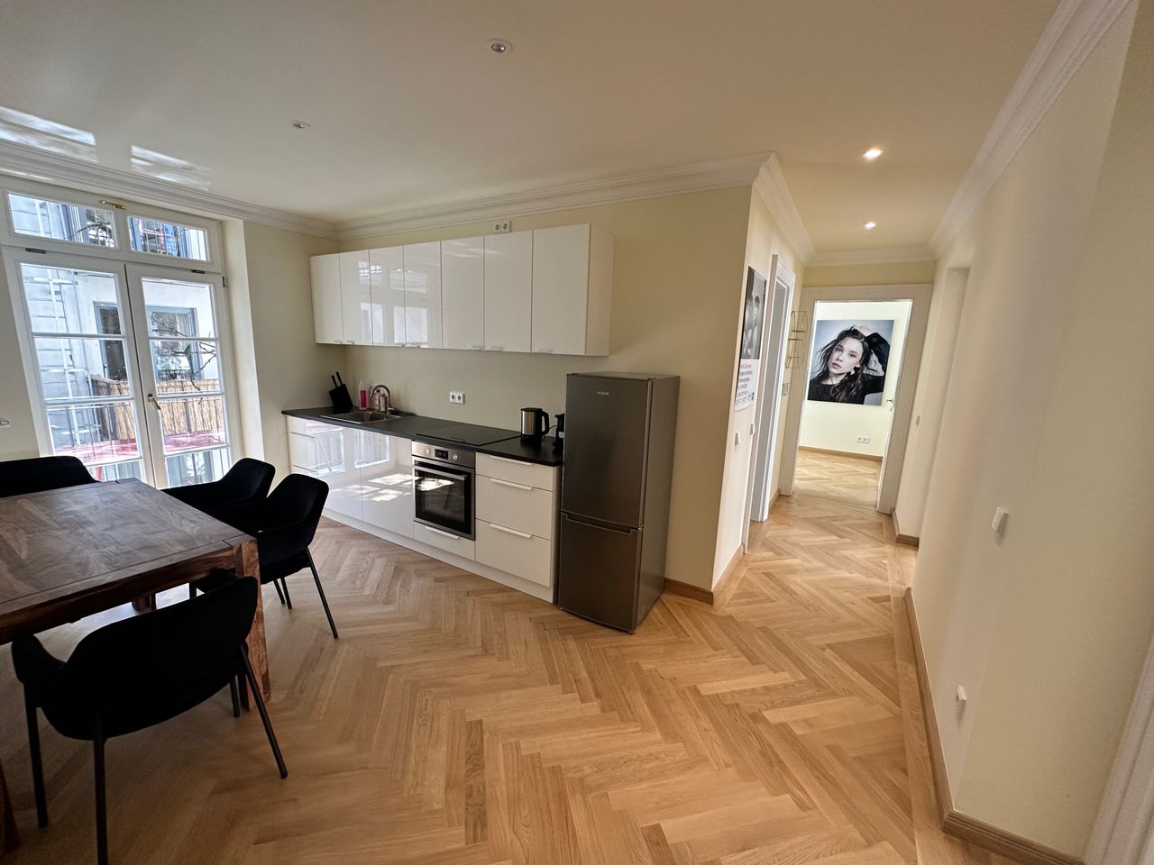 Helles, modern eingerichtete Wohnung in Denkmalschutz Gebäude. Mitten in der Stadt 2 Minuten von der Isar. Hohe Decken und schöner Fischgrätenholzboden. 5 Minuten entfernt von der Innenstadt, dem Odeonsplatz, dem Englischen Garten und Schwabing. Restaurants, Cafés, Parks, Museen und öffentlichen Verkehrsmitteln.