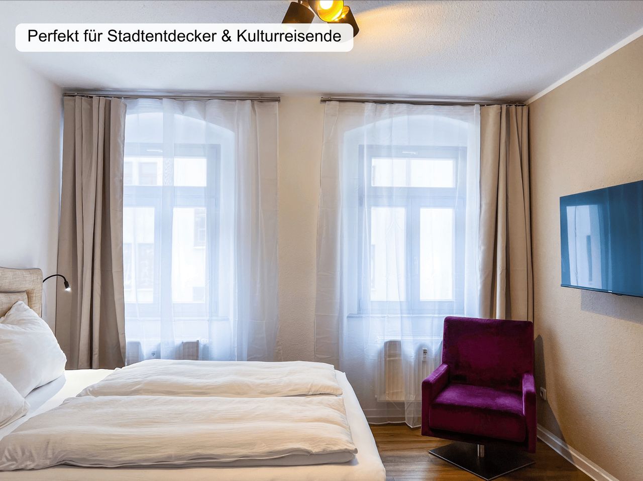 Stilvoll möbliertes 2-Zimmer-Apartment (41 m²) im Herzen von Meißen – ideal für bis zu 4 Personen. Ausgestattet mit zwei Smart-TVs, schnellem WLAN, voll ausgestatteter Küche, Waschmaschine und privatem Parkplatz. Ruhige Lage mit Elbblick – Sehenswürdigkeiten, Cafés und Altstadt fußläufig erreichbar. Perfekt für Urlauber, Geschäftsreisende oder Monteure.