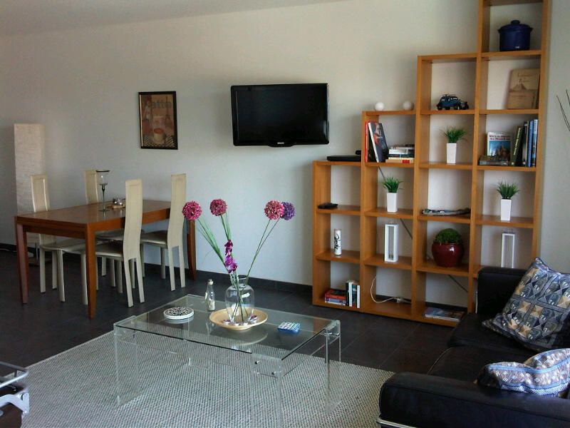 Wunderschönes Apartment mit großem S/W-Balkon im Ortszentrum von Odelzhausen. Diverse Einkaufsgelegenheiten und Bushaltestellen in Richtung Dachau und München Pasing sind in wenigen Gehminuten erreichbar. Zur Autobahn A8 (München-Stuttgart) sind es 1,5 km. Die Wohnung ist hochwertig ausgestattet mit Fliesen und Fußbodenheizung. Sie besteht aus einem großzügigen Wohn-Schlafraum mit 140er Schlafcouch, Corbusier-Ledercouch und -Sessel sowie TV-Gerät, integrierter hochwertiger Einbauküche mit Spülm...