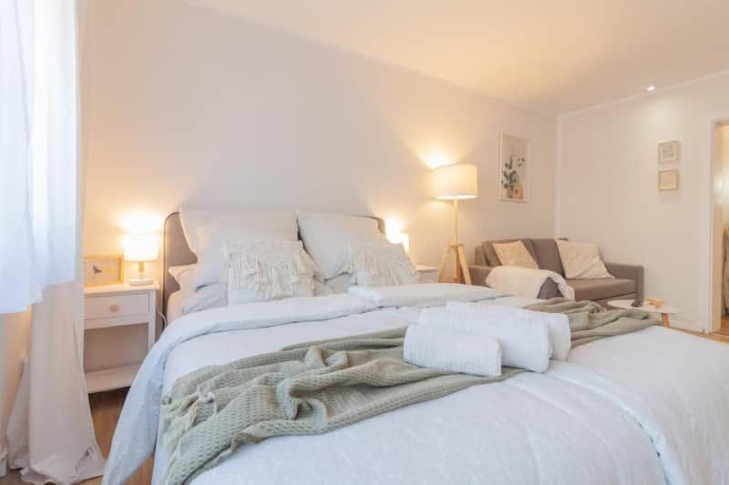 Willkommen bei nJoyHomes in Filderstadt! Unser frisch renoviertes 1-Zimmer Apartment verfügt über alles, was du für einen schönen Aufenthalt brauchst. * Queen-Size Bett * Schlafsofa * Nähe Stuttgart Flughafen & Messe * Modernes Bad mit Dusche und WC * Smart-TV * Geschmacksvoller Kaffee * Küchenzeile * Terrasse ☆"Die Wohnung ist stilvoll eingerichtet, blitzblank und sehr nah am Stuttgarter Flughafen." Deine Unterkunft Diese moderne und frisch renovierte Wohnung ist perfekt für 2 Perso...