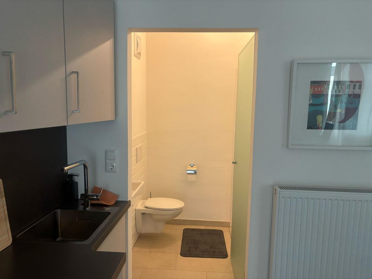 Diese stilvolle 1-Zimmer-Wohnung bietet alles, was Sie für einen angenehmen Aufenthalt benötigen. Die moderne Küche ist voll ausgestattet und lädt zum Kochen ein, während das hochwertige Badezimmer mit klaren Linien und zeitgemäßem Design überzeugt. Im Wohn- und Schlafbereich erwartet Sie ein gemütliches Doppelbett sowie ein Fernseher für entspannte Abende. Dank der geschmackvollen Einrichtung und der durchdachten Raumaufteilung eignet sich die Wohnung ideal für Berufstätige, Expats oder Single...