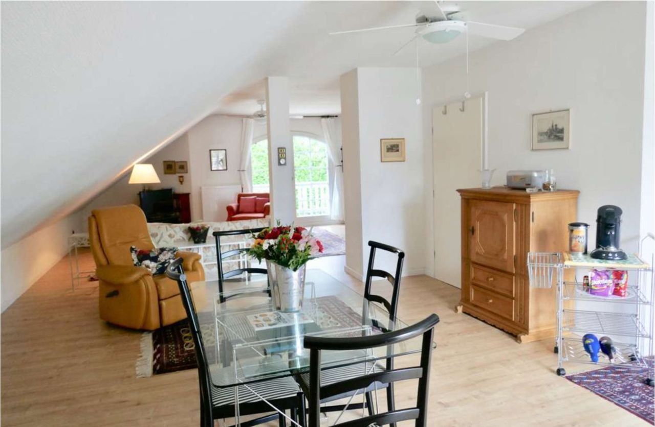 Hierbei handelt es sich um eine Dachgeschoss Loft-Wohnung in der 1. Etage eines Einfamilienhauses mit separatem Eingang. Die Wohnung besitzt einen großen Wohn - und Schlafbereich mit integrierter Singleküche, sowie ein Duschbad, einen begehbaren Kleiderschrank und je eine Nord - und Südterrasse. Gehobene Einrichtung, Bett 140 cm, Digital-TV, Radio, DVD-Player, Wlan inklusive, Geschirrspüler, Waschmaschine, Mikrowelle, die Wohnung ist löffelfertig eingerichtet. Ruhige Wohngegend in einer Sackga...