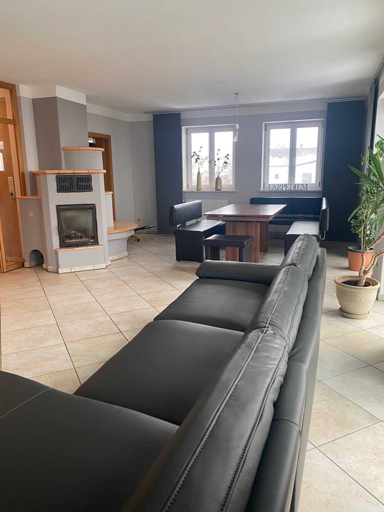 Neu möblierte große Wohnung im 1. Stock und Dachgeschoss, in der Nähe vom Airport Memmingerberg zur befristeten Vermietung. Es gibt 3 Schlafzimmer, 2 Bäder und eine große Wohn-Essküche. Das Ess- und Wohnzimmer verfügt über einen Kachelofen 2 Stellplätze vor dem Haus vorhanden.