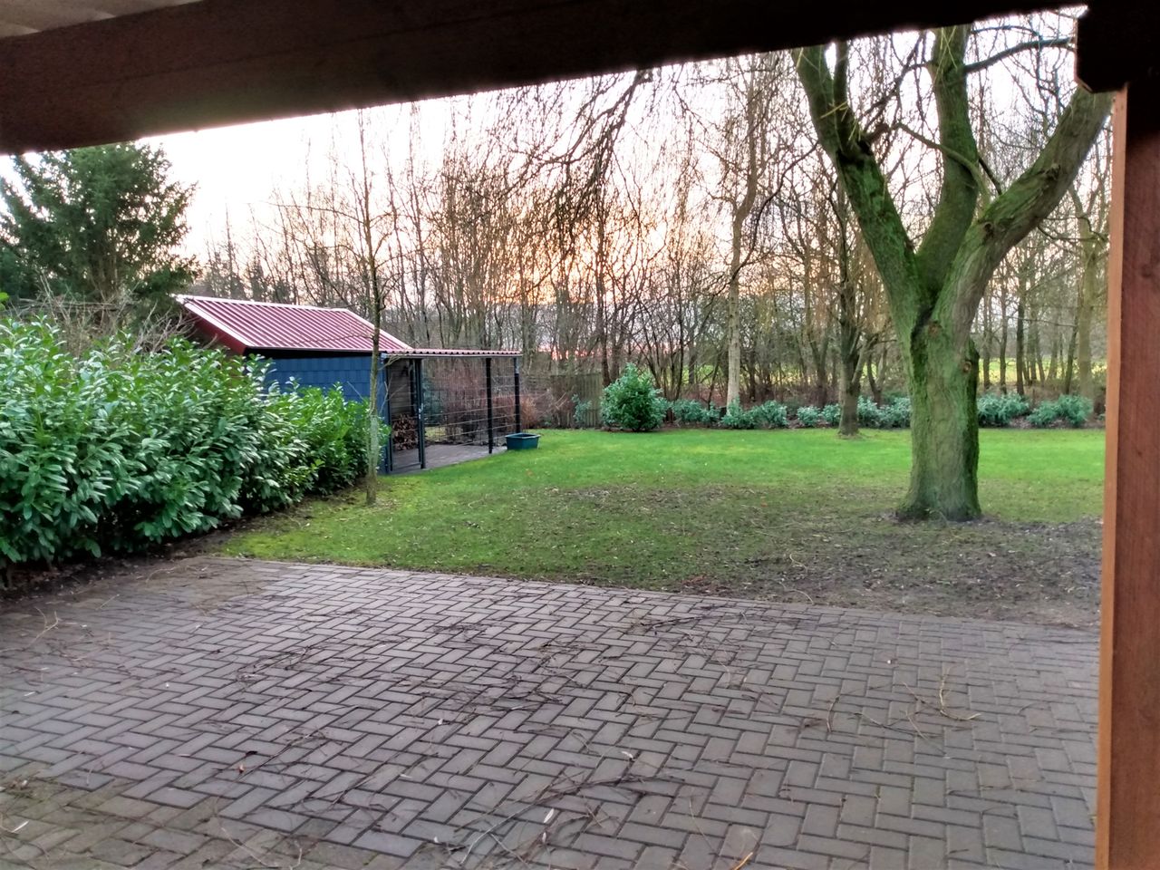 Überdachter abschliessbarer Fahrradabstellraum ,Terrassennutzung Gartenblick möglich.