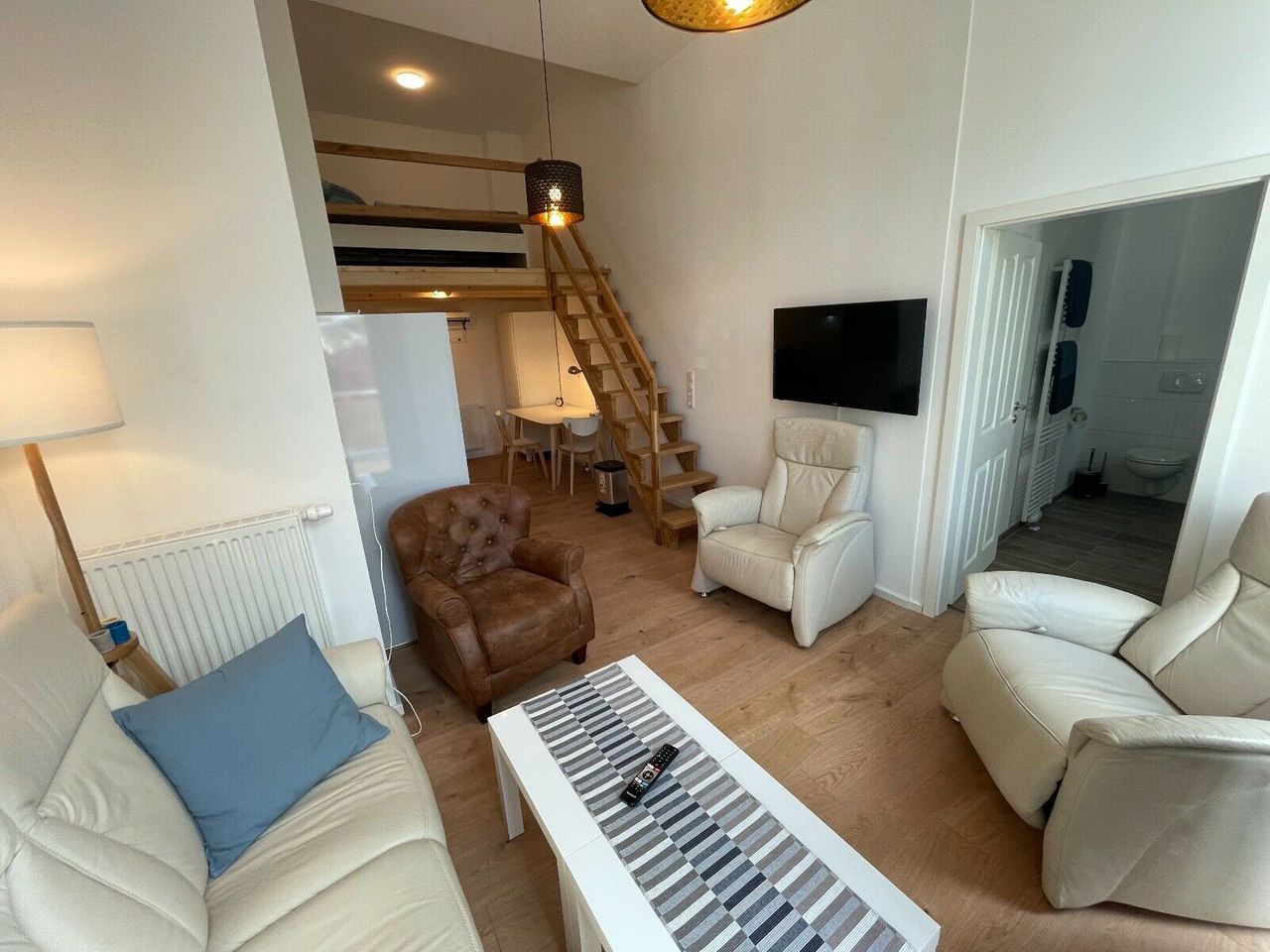 Die Wohnung ist Luxuriös ausgestattet, das Bad verfügt über eine Bodentiefe Dusche, hochwertige Keramik und Armaturen. Eine Moderne voll ausgestattete Einbauküche ist vorhanden, diese ist mit allem bestückt was man braucht. Der Wohnbereich verfügt über ein gemütliches Ledersofa und Relax Sessel. Natürlich befindet sich auch ein moderner Smart TV in der Wohnung der Zugang zu Netflix und Amazon prime angeboten bietet. Das Gemütliche Doppelbett befindet sich in der Schlafgalerie. Der Balkon lädt zu...