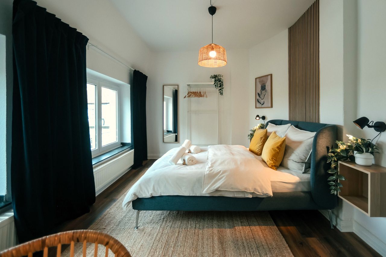Willkommen in unserer charmanten Altbauwohnung in Gelsenkirchen-Buer! Unsere großzügige Unterkunft für bis zu 6 Personen verfügt über alles, was du für einen schönen Zeit benötigst: → 2 Queensize-Betten → Schlafsofa → Smart-TV → Vollausgestatteter Küchen mit Kaffee und Tee → Super zentral gelegene Innenstadtlage → Hervorragende ÖPNV-Anbindung → Reise und Babybett