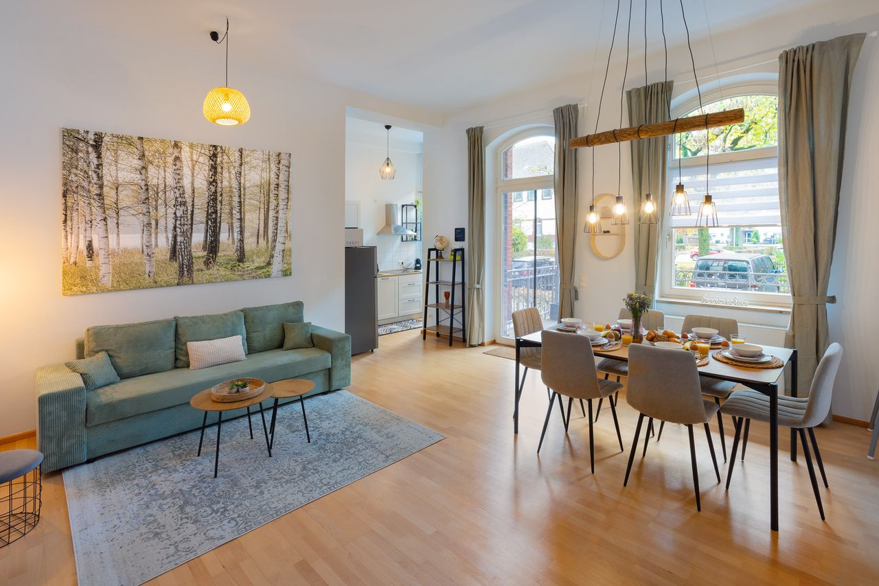 Herzlich willkommen in unserer geräumigen und familienfreundlichen Drei-Zimmer-Wohnung in Wesel! Mit genügend Platz für bis zu sechs Personen bietet unsere gemütliche Unterkunft den perfekten Rahmen für Euren Aufenthalt auf Zeit. → 2 bequeme Doppelbetten → Gute Verkehrsanbindung und eigener Parkplatz → Schlafsofa für 5. & 6. Gast → Smart-TV mit Waipu-TV + Streaming-Option → Küche → fußläufig zu Bahnhof, Restaurants und Geschäften Du wohnst in einer gepflegten Wohnanlage mit historischen Gebäu...