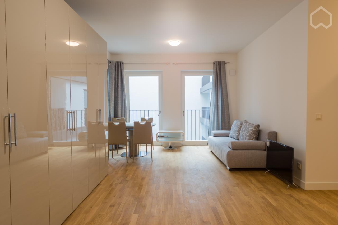ERSTBEZUG: Unsere hochwertig ausgestattete und möblierte 2 Zimmer Neubauwohnung befindet sich in einer exklusiven Wohnanlage in Berlin Mitte unweit vom Gendarmenmarkt und Leipziger Straße. Das Gebäude wurde 2016 fertiggestellt und besitzt einen Aufzug. Die stilvolle und komfortable Einrichtung verleiht der Wohnung einen besonderen Charakter. Es erwartet Sie ein moderner Mix mit einem einzigartigen Luxusambiente, gemeinsam mit den clever entworfenen Grundrissen & vielen bodentiefen Fenstern biete...