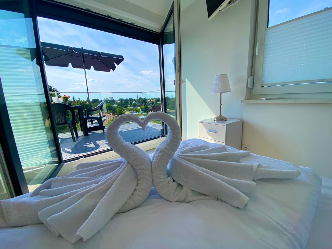 Neubau Bj. 2024 mit 16 Wohnungen. Wir freuen uns auf deinen Besuch. 5. Ebene/Dachgeschoss: 2-Zimmer-Wohnung (60m2) inkl. Klimaanlage für 2 (*bis maximal 4) Personen mit Personenaufzug in Berlin-Pankow-Heinersdorf. Kostenloses Internet über WLAN. Optionales Parken auf dem Grundstück nach Absprache (120 €/Monat) möglich. 1 Schlafzimmer mit TV-Sat mit Bett (180x200) mit grosser Terrasse 1 Wohnzimmer mit TV-Sat, bequemes Schlafsofa (160x200) mit Spiegelkleiderschrank. Küche mit grosser Terr...
