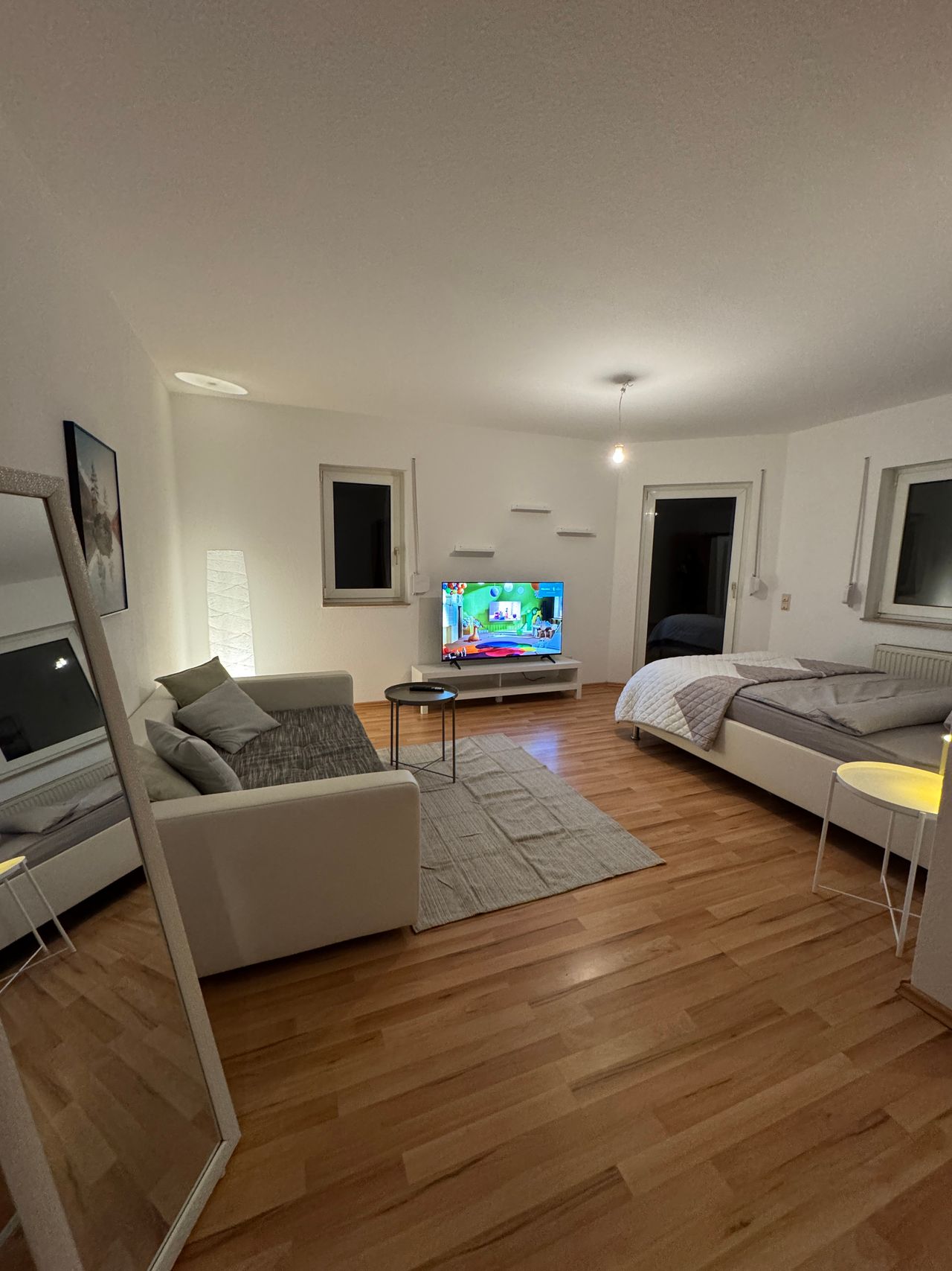 Nur 8 Minuten zur Eli Lilly Baustelle in Alzey! Gemütliches und großzügig geschnittenes Studio Apartment mit Garten und eigener, großer Terrasse sowie neu saniertem Tageslichtbad, separater Küche und eigenem Stellplatz. Möbliert, komplett ausgestattet und ab sofort bezugsfertig Unsere Wohnungen – Ihre Vorteile: - Voll ausgestattet: Die Wohnung bietet alles, was man zum Wohlfühlen benötigen: Gemütliches Wohnzimmer mit 55-Zoll-Smart-TV, Sofa und Boxspringbett sowie eine voll ausgestattete Küche...