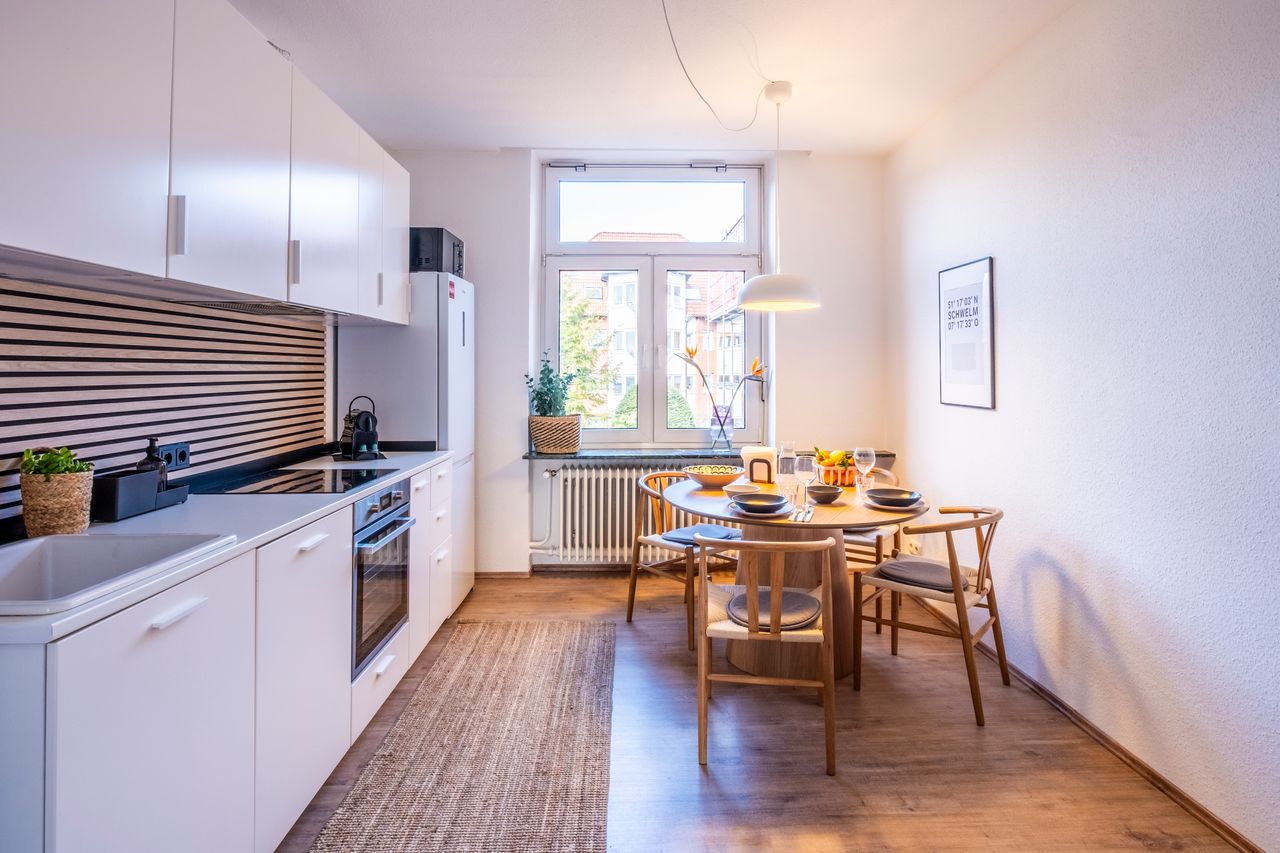 Diese stilvoll eingerichtete 2-Zimmer-Wohnung mit ca. 70 m² verbindet Großzügigkeit mit Komfort. Die helle, voll ausgestattete Wohnküche lädt zum Verweilen ein, das gemütliche Wohnzimmer bietet mit zwei Schlafsofas zusätzliche Flexibilität. Im separaten Schlafzimmer sorgt ein großes Doppelbett (1,80 m) für erholsamen Schlaf. Die Wohnung eignet sich ideal für Pendler, Familien und Berufstätige auf Zeit, die ein Zuhause mit Atmosphäre suchen.