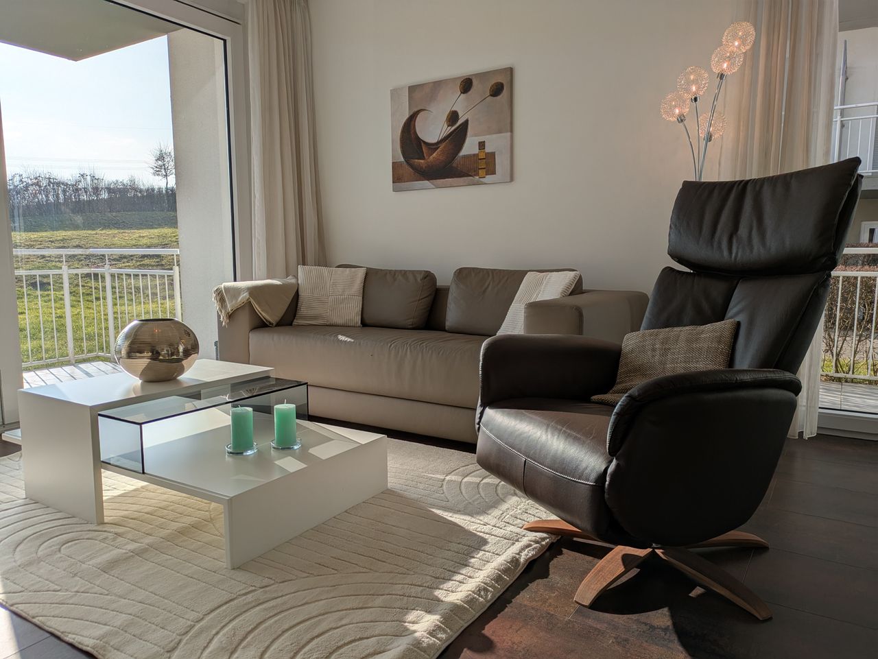 Dieses Wellness-Apartment bietet Platz für 1-4 Personen und ist ausgestattet mit - einem Schlafzimmer mit King-Size-Doppelbett, - einem einladenden Wohnzimmer mit bequemer Schlafcouch - einem stilvollen Bad mit ebenerdiger Regendusche - einer voll ausgestatteten Küche inkl. Kaffeemaschine für den besten Start in den Tag - gleich zwei Terrassen, welche zum Entspannen im Freien einladen.