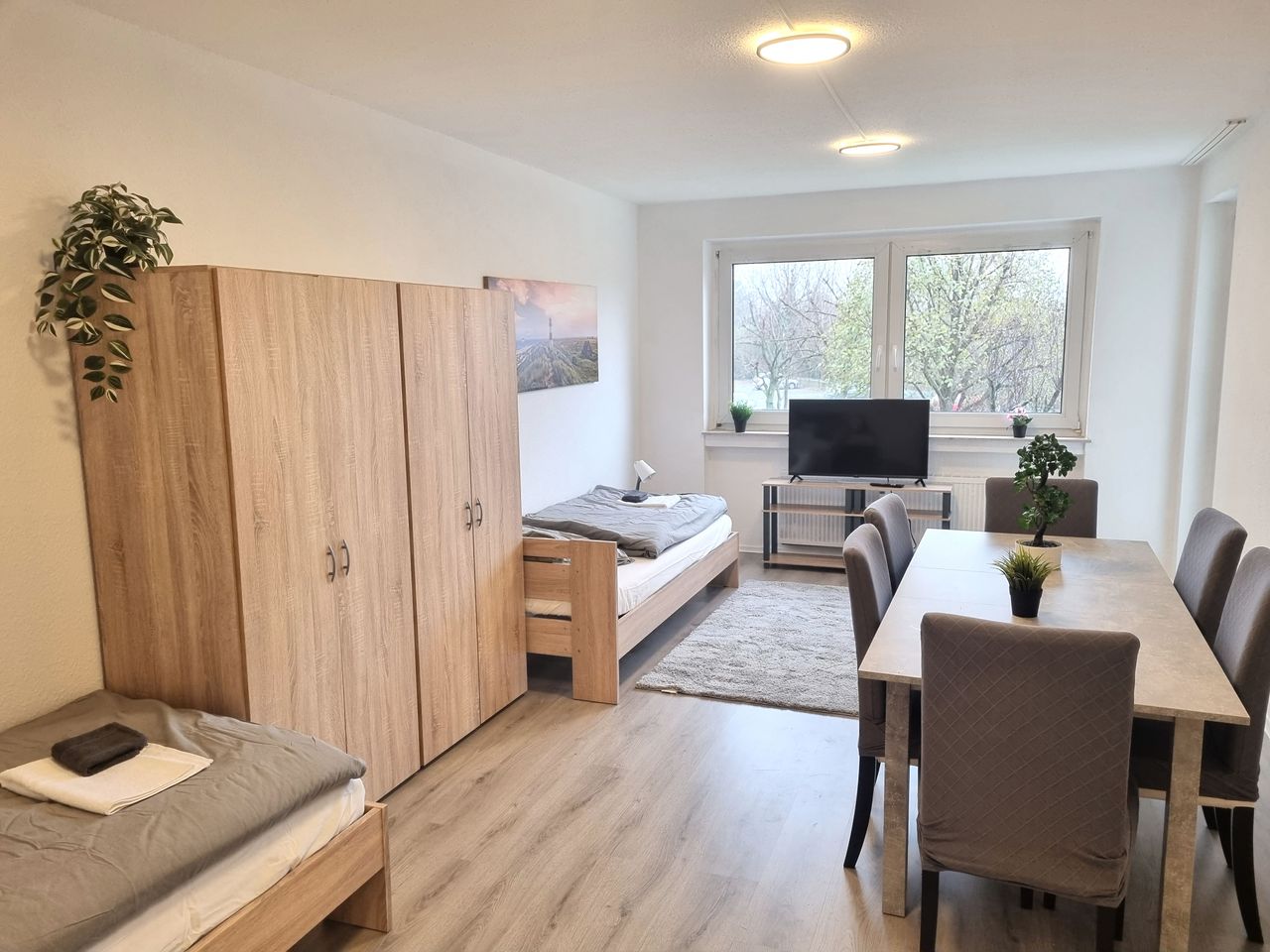 Die Wohnung befindet sich im 1 .OG eines gepflegten Hochhauses. Sie erreichen jede Etage bequem mit dem Aufzug. Sie haben 3 Schlafzimmer, 92 qm groß, ausgestattet mit Einzelbetten mit Platz für bis zu 7 Personen. Großer und heller Wohn- und Essbereich der zu gemeinsamen Mahlzeiten einlädt und direkten Zugang zum Balkon hat. Jedes der Zimmer ist mit Smart TV ausgestattet, ziehen Sie sich hier zum entspannen zurück!