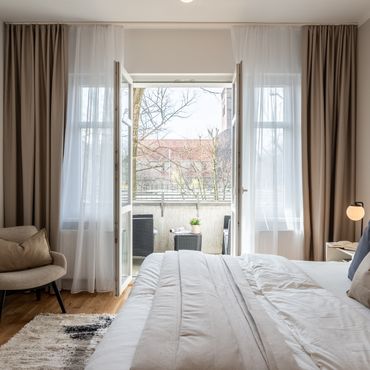 Helles Apartment mit zwei Schlafzimmern und Balkon in Berlin Mitte am Rosa-Luxemburg-Platz