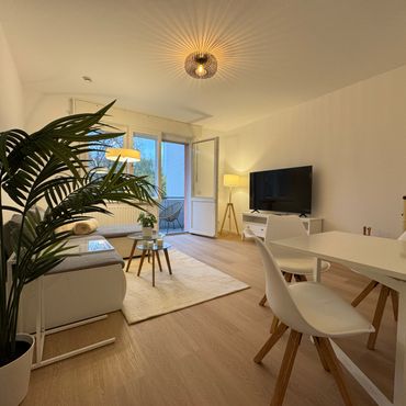 Modern eingerichtete 1-Bett-Wohnung (großer Balkon)