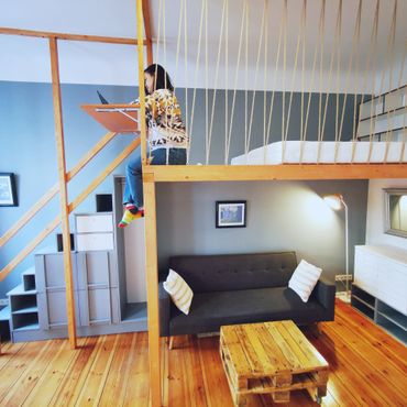 Möbliertes Studio mit Schlafsofa im Dachgeschoss